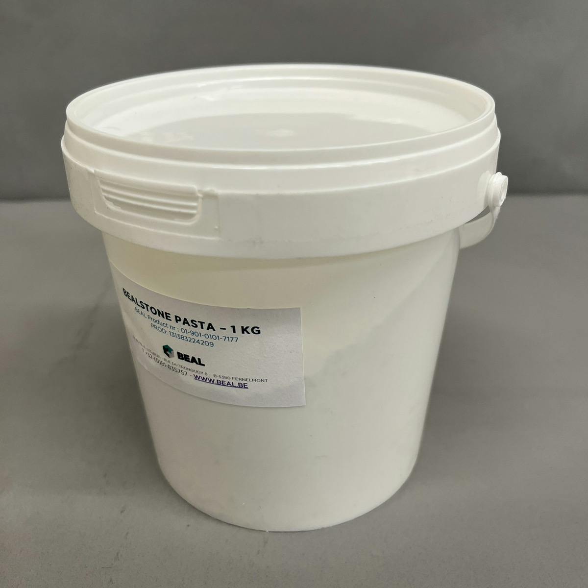 - 別のネリダルにリキッド、顔料、流動化剤を入れ、そこに総量の三分の一ほどのパウダーと種石を3~4㎏ほど練り混ぜる。